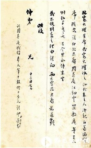 梁?jiǎn)⒊瑢懡o胞弟梁?jiǎn)椎男?局部)