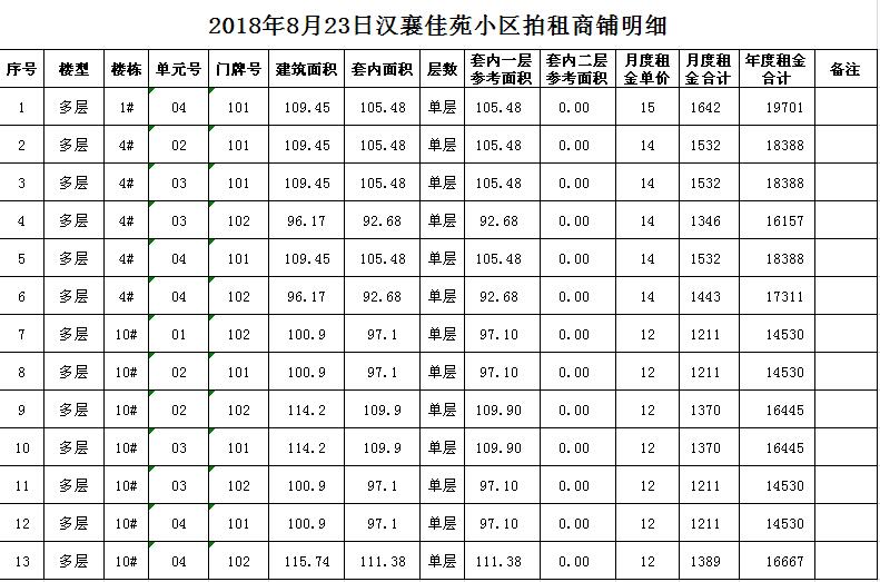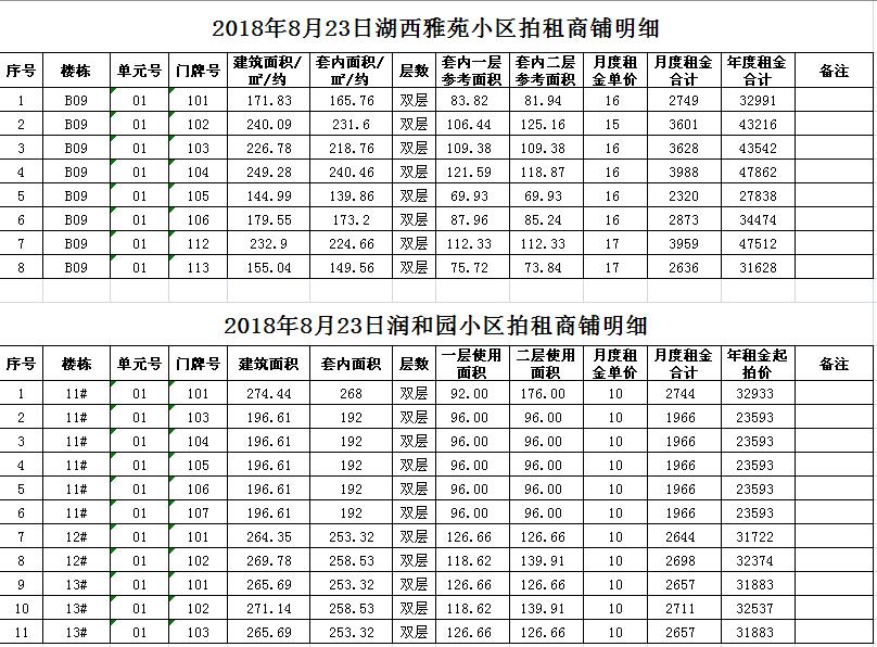 關(guān)注微信公眾號我公司受委托,定于2018年8月23日10時(shí)在中山南路55號本公司拍賣廳對以下小區(qū)商鋪公開拍租:湖西雅苑、和風(fēng)雅致、漢襄佳苑、尚景園、潤和園、嘉和雅苑等。商鋪共數(shù)十套,均為空房,面積分別為一百至數(shù)百平方米不等。租期均為3年。