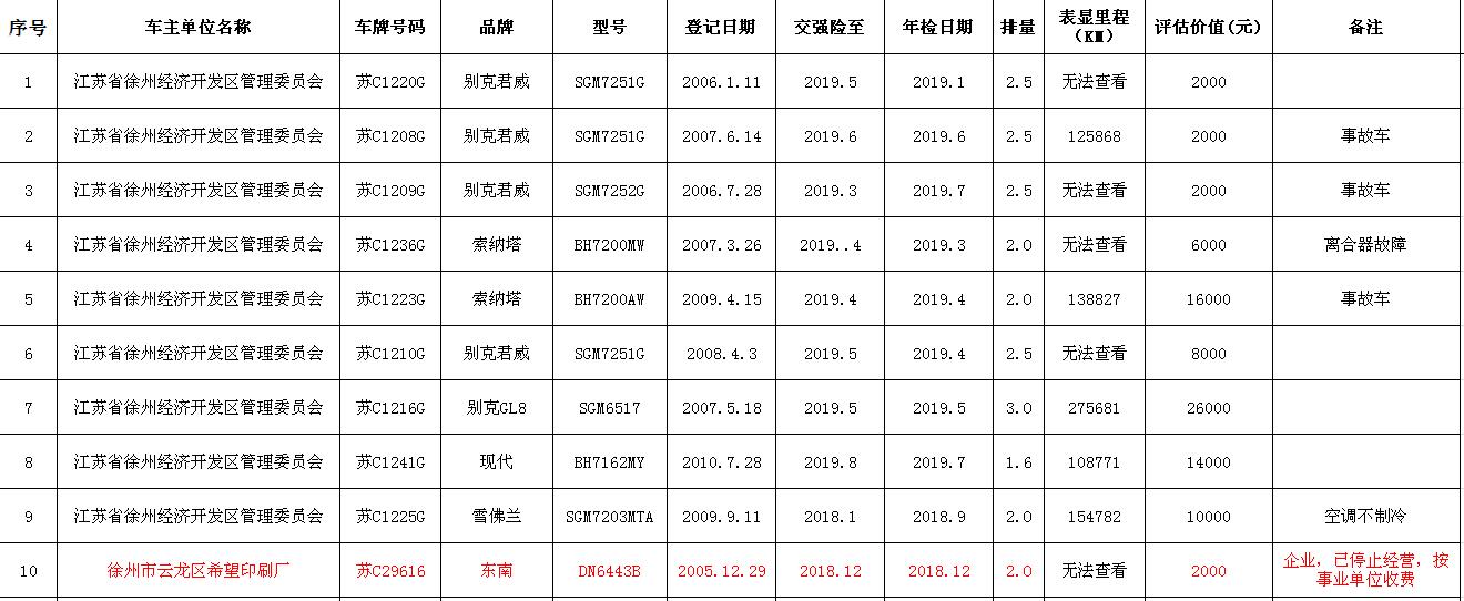即日起展示。有意者請攜帶有效證件至我公司辦理報名手續(xù),并交納每輛車1萬元保證金即可參加拍賣會,報名截止至9月13日16時。