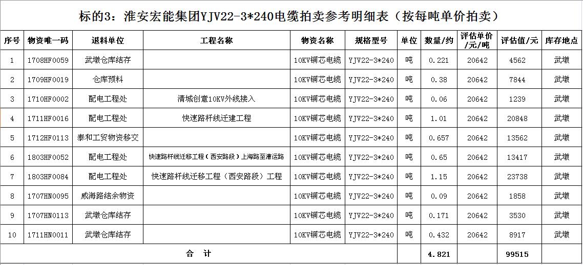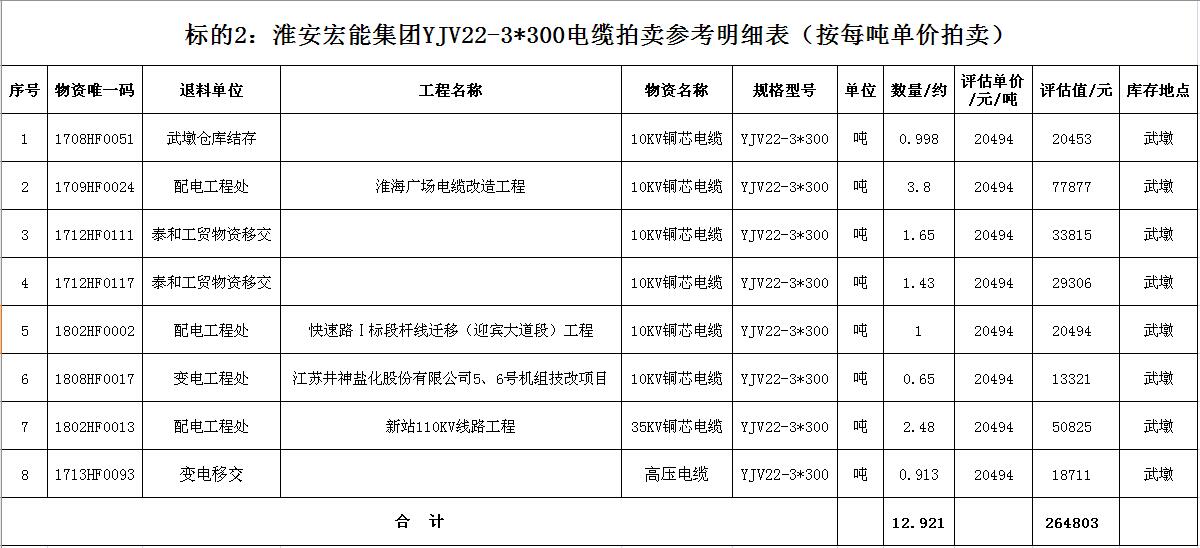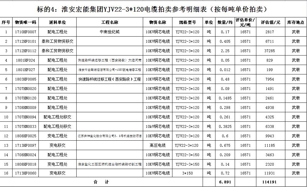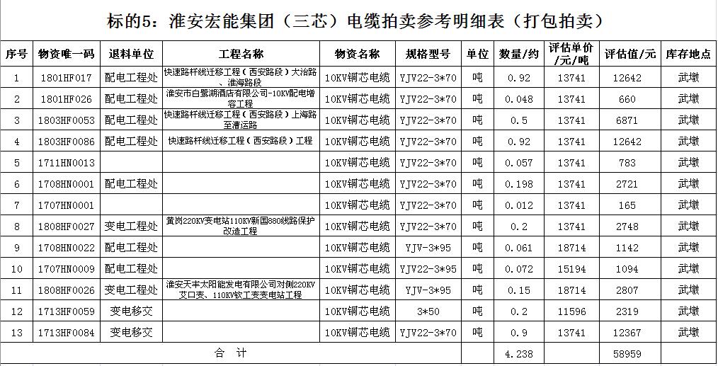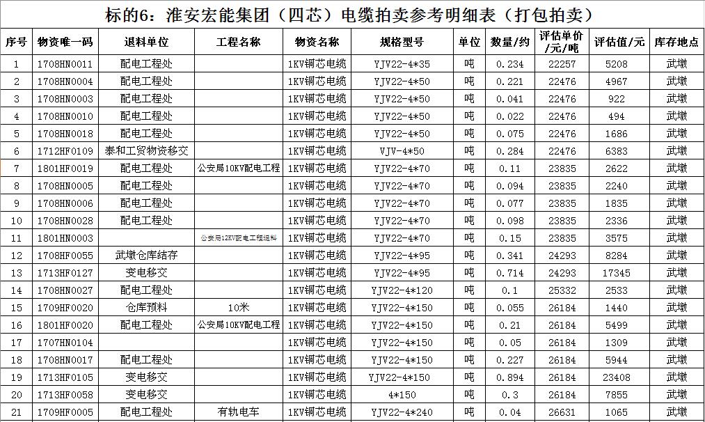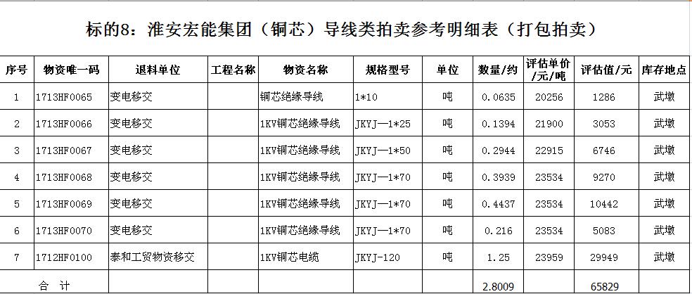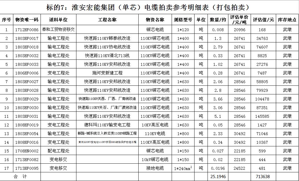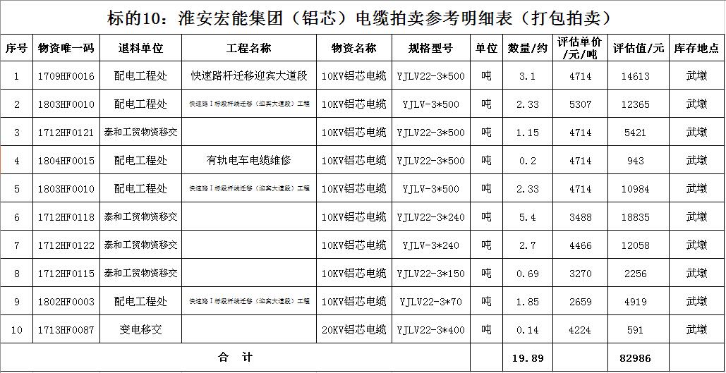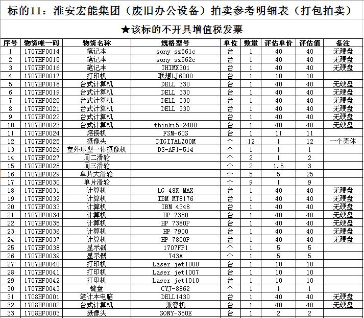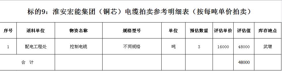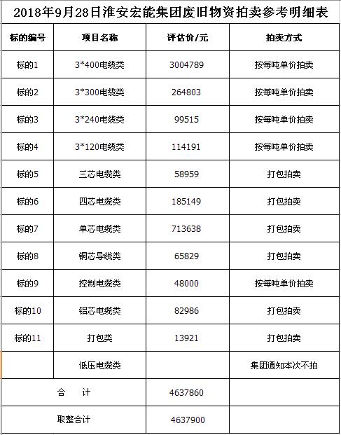 關注微信公眾號受淮安宏能集團有限公司委托,我公司將通過中國拍賣行業(yè)協(xié)會網(wǎng)絡拍賣平臺以網(wǎng)絡競價的方式公開拍賣廢舊物資一批,主要包括:各型電纜,計算機、打印機等辦公用品(詳見拍品目錄)。