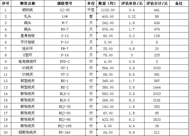 淮陰力源電力實業(yè)開發(fā)有限公司廢舊物資拍賣參考明細表