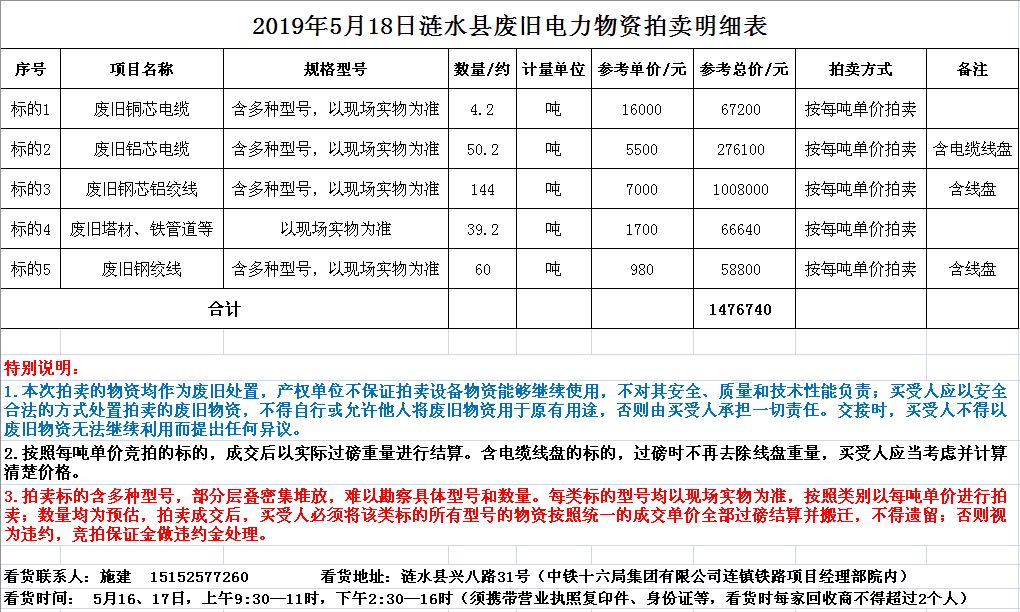 關(guān)注微信公眾號(hào)受委托,我公司將通過中國(guó)拍賣行業(yè)協(xié)會(huì)網(wǎng)絡(luò)拍賣平臺(tái)以網(wǎng)絡(luò)競(jìng)價(jià)的方式公開拍賣以下廢舊電力物資,主要包括:銅芯電纜、鋁芯電纜、鋼芯鋁絞線、鋼絞線、角鋼塔等。