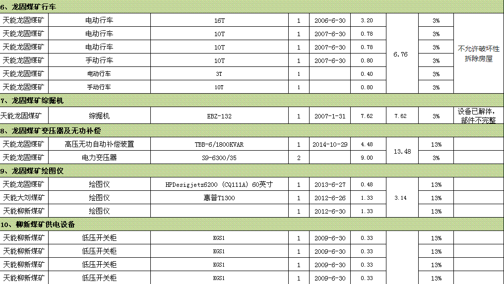 裝載機(jī)、鉆床、車床、提升機(jī)、壓風(fēng)機(jī)、行車、綜掘機(jī)、變壓器、開關(guān)柜、鏟車汽車衡、測(cè)量設(shè)備等。