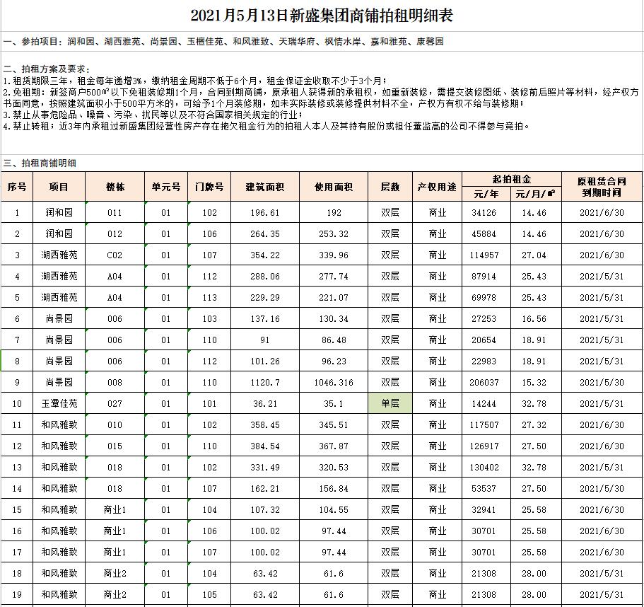 關(guān)注微信公眾號(hào)我公司受委托,定于2021年5月13日9:30時(shí)在徐州市中山南路55號(hào)本公司拍賣廳公開(kāi)拍租以下商鋪:湖西雅苑14間、嘉和雅苑3間、尚景園11間、玉潭佳苑4間、紫荊園2間、康馨園3間、楓情水岸2間、潤(rùn)和園3間、天瑞華府1間、和風(fēng)雅致21間。面積分別約為數(shù)十至三百余平米不等,租期均為三年。